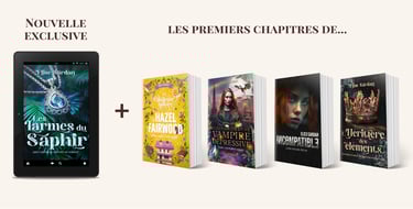 Recevez votre nouvelle gratuite et les trois premiers chapitres de mes derniers romans directement dans votre boîte mail. Plongez dans des mondes remplis de magie et d'aventure !